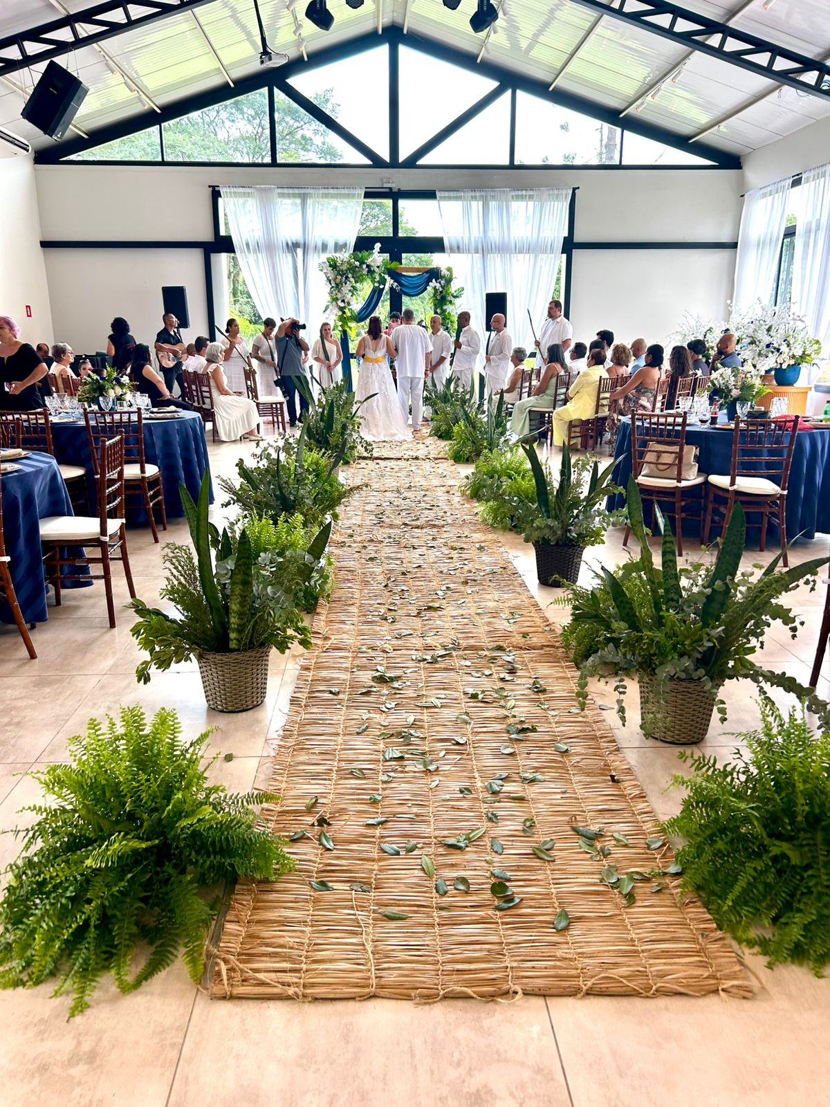 Cerimônia ao ar livre cercada de verde, com paisagens de tirar o fôlego.